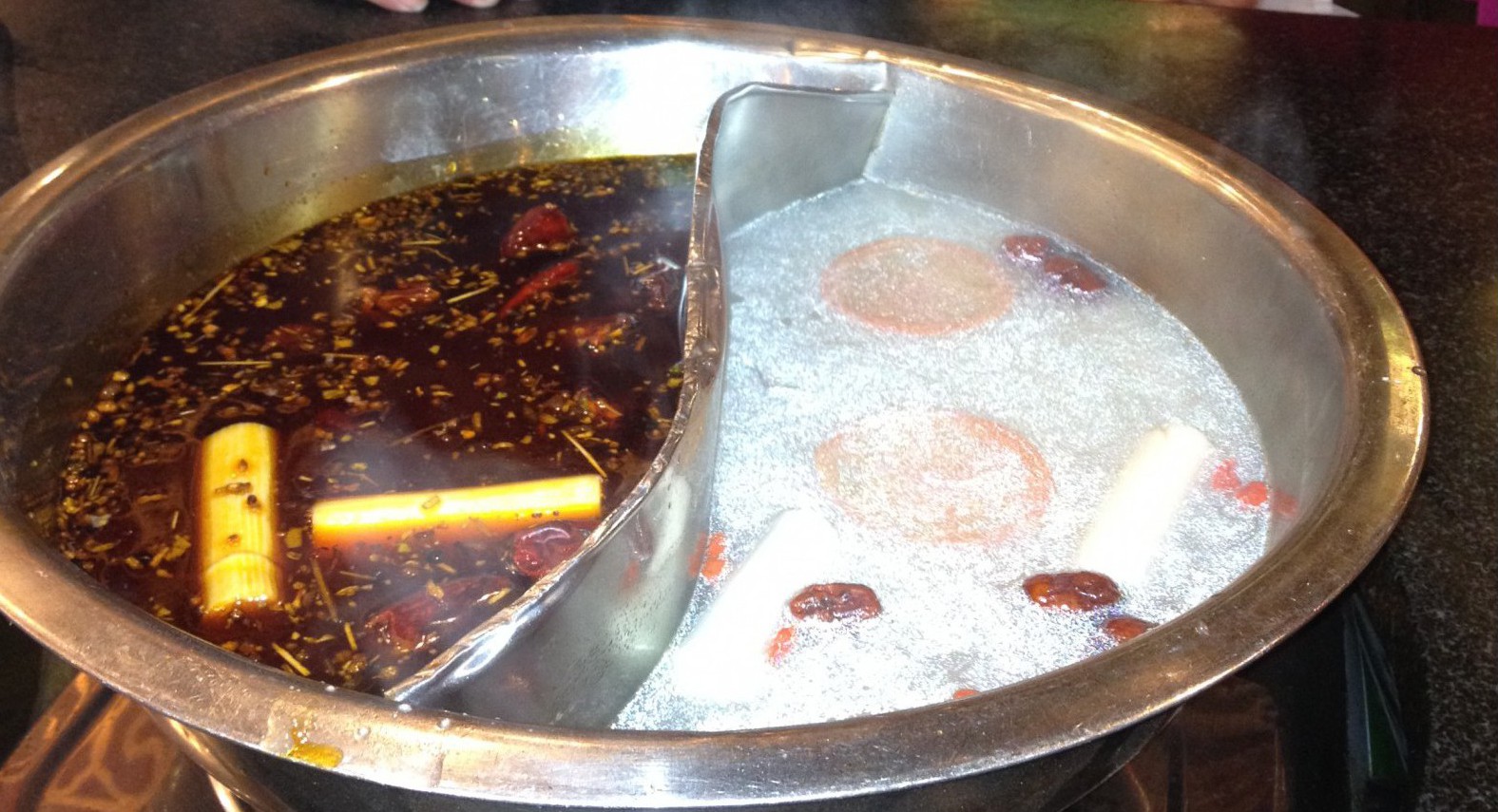 Gelukkig heeft de tafel naast ons genoeg genoten van onze onwetendheid en één van de dames loopt naar onze tafel om het, in het chinees, uit te leggen en uiteindelijk gelukkig ook voor te doen. Het blijkt een soort fonduepan te zijn en de grote bladeren en tofu die ernaast liggen dienen in de kokende brei gegooid te worden. Het is leuk en, ondanks de scherpe kruiden die ons doen huilen en snotteren, zeker de moeite waard. Terug op straat lopen we rustig richting de metro. Het is inmiddels al laat en om ons heen wordt gelachen. Op verschillende plaatsen wankelen dronken meisjes op veel te hoge hakken en in de metro geeft een jongeman over in een prullebak. Het is zaterdagavond en dat moet gevierd worden.