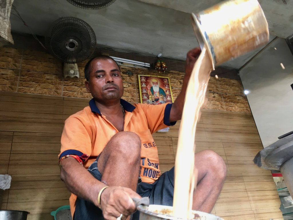 Zodra ik het eerste theestalletje passeer, ruik ik het aroma van masala chai (zoete melkthee met verse kruiden) en maakt mijn hart een sprongetje. De theebaas kijkt me achterdochtig aan, maar komt dan los en laat trots zijn kunsten zien: zijn recept, zijn kopje geluk.