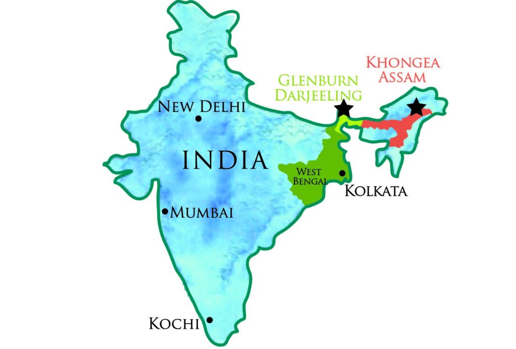 Tijdens ons bezoek aan Darjeeling verblijven we op de Glenburn Tea Estate. Glenburn is een kleine theeplantage gelegen op een heuvel aan de oevers van de rivier Rungeet, hoog in de Himalaya’s. Glenburn is opgericht door een Schots theebedrijf in 1859. Sinds 2001 is Glenburn in handen van de familie Prakash, tevens eigenaar van de Khongea Tea Estate in Assam. De Prakash familie is een echte theefamilie. Zij staan ook bekend als de Chaiwala familie, wat letterlijk theeplanters betekent.