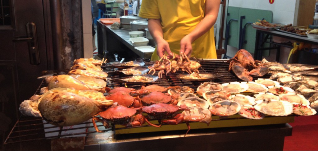 Het is een prachtig eiland. Het is een juweeltje. Bezaaid met kleine winkeltjes, theehuisjes, eettentjes en verscholen tuinen. We lopen verder langs reuzenkrabben die klaar liggen om gefrituurd te worden, langs kikkers en insecten aan het spies en langs ondefinieerbare hapjes op de barbeque. We eindigen de dag in een romantische tuin, verstopt achter een muur in een verlaten steegje. De kaart toont alleen chinese karakters en we doen onze bestelling. De hese stem van een jazz-zangeres klinkt zwoel op de achtergrond. We wanen ons niet langer in China. Het is inmiddels donker en grote schaduwen spelen langzaam met de zachte verlichting in de nacht.
